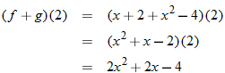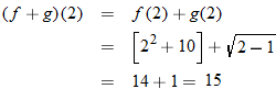 One way of evaluating these composite functions is to calculate the two individual composites in terms of  :  and  . Once those functions are known, the values can be substituted for  and evaluated.