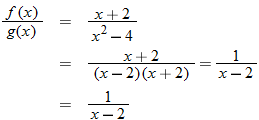 For the functions given in Example 2, determine the quotient function  , and state its domain.