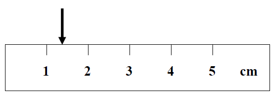 It is obvious that the location is between 1 cm and 2 cm. The correct way to express this location is to make one more estimate based on your intuition. That is, in this case, a reading of 1.3 cm is estimated. This measurement is said to contain two significant figures. Note that there should only be one estimated place in any measurement. If data are to contain, say, three significant figures, two must be known, and the third estimated. Do not try to locate the position of the arrow in fig. 1 as 1.351 cm.