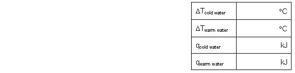 Question 2: Calculate ΔTcold water, ΔTwarm water, qcold water, and qwarm water. Show your work.