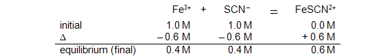 is 0.0 M. In our example, you might measure an equilibrium (final) concentration of 0.6 M FeSCN2+