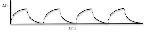 discharging: ΔV = ΔV0e(−t/RC)