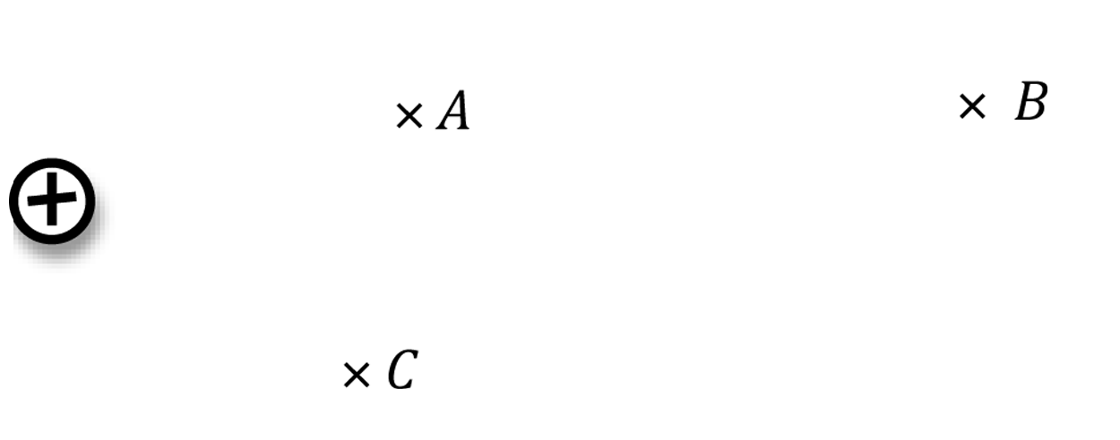 Determine equipotential points in the space inside the triangle as well as outside it.