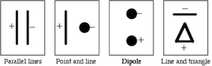 Please print the worksheet for this lab. You will need this sheet to record your data. You will use the PASCO scientific field mapper, which consists of a sheet of carbon-impregnated paper. The electrodes or charged bodies are formed by a line of conductive ink, which has been drawn on the paper and then allowed to dry. You will be supplied with four electrode configurations already drawn out on conductive paper, which match the copies provided on the worksheet. The patterns are shown in Fig. 4 below.