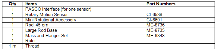 This lab has two parts. The purpose of Experiment 1 is to measure the angular position and velocity of a rotating body. Use the rotary motion sensor to measure the rotation of a disk as the disk undergoes a constant angular acceleration. Use Capstone to record and display the data, then plot the angular position and angular velocity and analyze them. Compare the plots of angular position and angular velocity for the accelerating disk to plots of position and velocity for an accelerating fan cart. The purpose of the Experiment 2 is to measure the rotational inertia of a disk and a ring. Use a rotary motion sensor to measure the rotation of each object as the object undergoes a constant angular acceleration. Use Capstone to record and display the data. Plot angular velocity use the slope to determine the angular acceleration. Use the amount of torque applied and the angular acceleration to find the rotational inertia. Calculate the theoretical rotational inertia based on mass and radius of the object and compare to the measured rotational inertia.Background