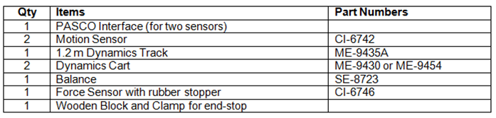 This lab has three parts. The purpose of Experiment 1 is to measure the amount of momentum before and after an inelastic collision. Use motion sensors to measure the motion of two carts before and after an inelastic collision. Use Capstone to record and display the data. The purpose of Experiment 2 is to measure the amount of momentum before and after an elastic collision. Use motion sensors to measure the motion of two carts before and after an elastic collision. Use Capstone to record and display the data. Determine the momentum for both carts before and after the collision. Compare the total momentum of the two carts before collision to the total momentum of both carts after collision. The purpose of Experiment 3 is to determine the similarities between the change in momentum and the impulse (net force multiplied by time) in a collision. Use the motion sensor to measure the motion of a cart as it collides with a block. Use a force sensor mounted on the track to measure the force of the collision over the same interval of time. Compare the change in momentum of the cart with the area of the measured force vs. time graph.Background