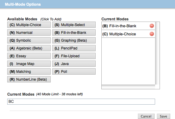 numerical and multiple-choice — you can create a multi-mode question to specify a