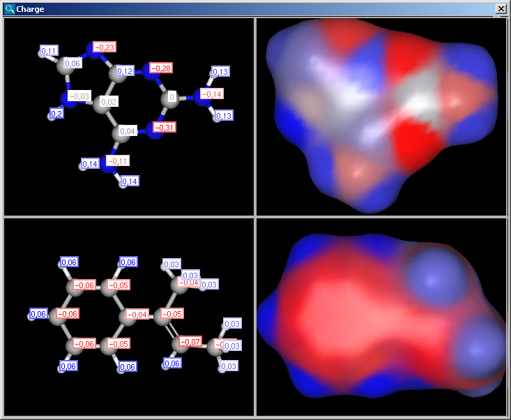 The partial charge distribution determines many physico-chemical properties of a molecule, such as ionization constants, reactivity and pharmacophore pattern. Use Charge plugin to compute the partial charge value of each atom. Total charge is calculated from sigma and pi charge components, and any of these three charge values can be displayed. Learn more about how the plugin calculates the partial charge.