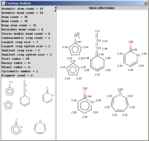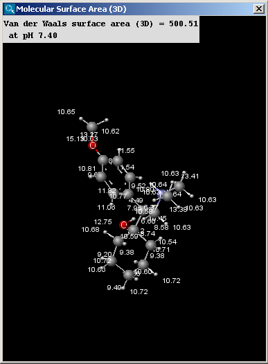 - Van der Waals: calculates the van der Waals surface of the molecule (in Å2).