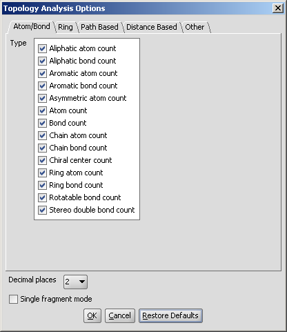in the Topology Analysis Options panel, here shown with the Atom/bond tab opened: