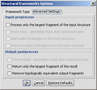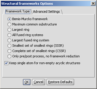 The plugin calculates Bemis and Murcko frameworks and other structure based reduced representations of the input structures.