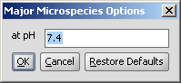The pH can be set in the Major Microspecies Options panel, the default pH is 7.4.