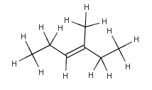 | original methylhexene molecule | with OMIT_POSTCLEAN option | without OMIT_POSTCLEAN option |
