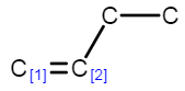 a linear sequence: a C marked [1] connected with a double bond to a C marked [2], further connected to two C's, each with a single-bond