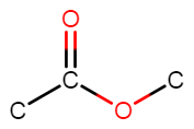 a branched sequence: a C atom connected to a branching C atom; the branching atom contains 1 double-bonded O atom in the first branch and a single-bonded O atom connected to a further single-bonded C atom in the second branch