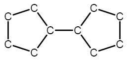 Two five-membered cyclic structures are connected by a single bond. Each cycle contains only single-bonded C atoms.