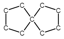 Two five-membered cyclic structures are connected to each other through a shared atom. Each cycle contains only single-bonded C atoms.