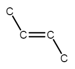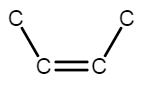 a linear sequence: 2 peripheral C atoms, each connected to 2 double-bonded C atoms; the peripheral atoms are positioned on opposite sides of the double bond