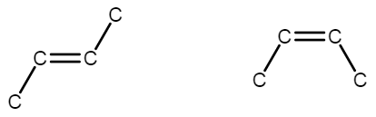 a composite structure: 2 isomers of the CC=CC structure are shown; 1 with both ends on the same side of the double bond; and 1 with the ends on opposite sides