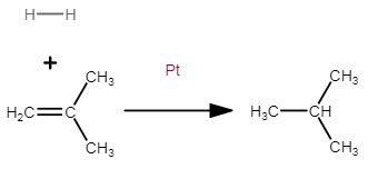 a reaction: C=C(C)C reacts with HH in the presence of Pt to form CC(C)C