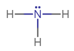 The molecule NH3 is shown with a double-dot placed next to the N atom. All atoms are connected by single bonds.