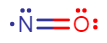 The NO molecule is shown with a single-dot and a double-dot placed next to the N atom and 2 double-dots placed next to the O atom. The atoms are connected by a double-bond.