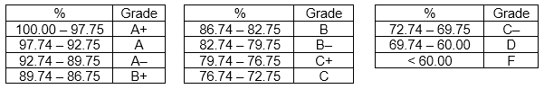 The grading scale is shown below with grades rounded to the nearest 0.01%.
