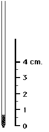 Very often, you will need to transfer "about 0.5 mL", or, "about 1 mL". The easiest way to do this is to use a "calibrated" Pasteur pipet. The calibration procedure is only approximate but very easy: Lay a clean pipet over the following drawing. Clearly mark the positions of 0.5, 1.0, 1.5, and 2.0 mL on the new pipet with a crayon or other marking pen. Use this same drawing to "calibrate" other pipets throughout the semester as needed.
