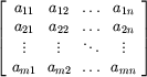 | Matrix | 'matrix(4,4,[a_(11),a_(12),...,a_(1n),a_(21),a_(22),...,a_(2n), _...,_...,\...,_...,a_(m1),a_(m2),...,a_(mn)])' | ![]() |