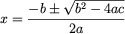 | Quadratic formula | 'x=(-b+/-sqrt(b^2-4ac))/(2a)' | ![]() |