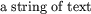 | Text | 'text(a string of text)' | ![]() |