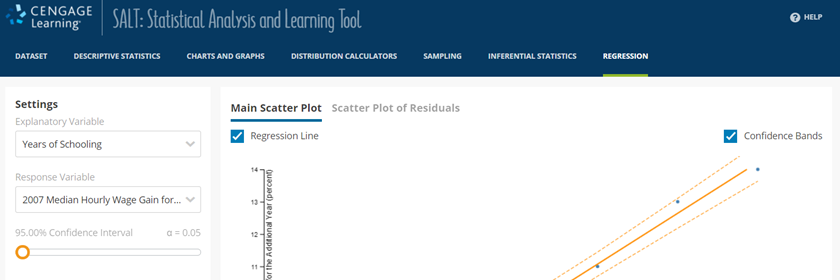 Click "Use SALT" to access SALT. The exercise data will be automatically imported into the tool. Navigate to the Regression tab.