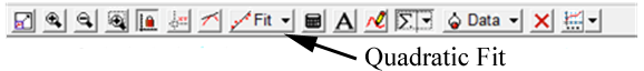 On the position vs time graph, highlight the curved part of the graph corresponding to the cart accelerating along the track. Fit the selected part of the data with a Quadratic Fit function.