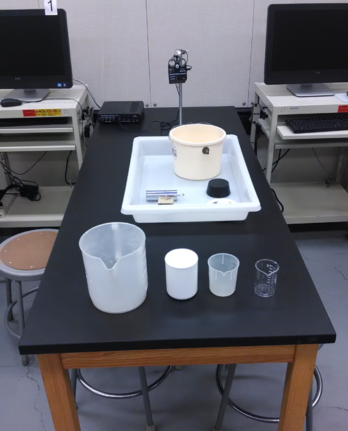 Measure the mass of the empty catch can. The catch can will be used to collect water displaced by the submerged object. Record the mass in the Inlab.