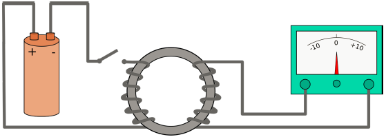 Magnetic induction is the creation of an electric current by the change in the magnetic flux, which is determined by the strength of the magnetic field and the perpendicular area upon which it is acting. Some background is in order to understand the above statement. Scientists long ago showed that current in a wire produced a magnetic field around the wire. In short, current can produce magnetic fields. Michael Faraday and other scientists of his time wondered if the opposite were true—could you produce an electric current from a magnetic field? Faraday's experiment was setup with an electromagnet on one side (a power supply attached to a wire coiled around one side of the iron ring) and a wire wrapped around the other side of the iron ring and then connected to a galvanometer.