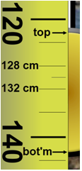 Ignore the grey band around the spherical bob. It's just there to help you see the edge of the bob against a variable background. See the top and bottom arrows in Figure 3 which indicate the actual top and bottom of the bob for measurement purposes.