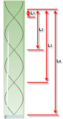 Reset the conditions in the tube again as before—room thermostat set to 0°C, air in the tube, C4 selected. Adjust the water level to L4 so that you're hearing the amplified sound in the tube. Use the lines tool to put a marker at the L4 (0°C) position.