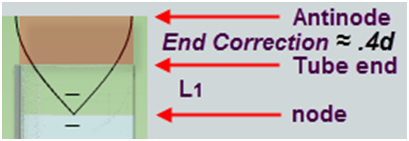 Note that this end correction is considered a part of the standing wave even though it is outside the physical tube. Be sure to include it in any calculations involving the effective length of the resonating air column.