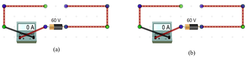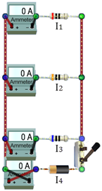 Without pressing the Shift key, pull the ammeter away from the circuit to disconnect it. Now reconnect it but swap the connections to the circuit. What happens and how do you interpret the meaning of the change? (Just do your best.)