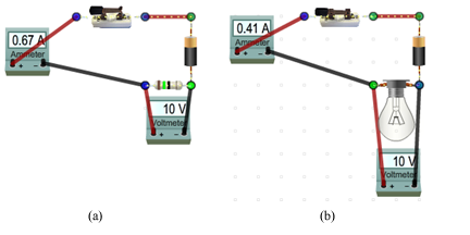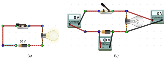 Figure 3: (a) Simple DC Circuit (b) Simple Circuit with Bulb
