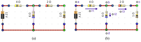 In Figure 15b, four labels, a–d, and three current arrows with labels I1–I3 have been added. Add these to your figure.
