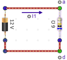 Consider the "life" of an electron in your car's electrical system. Each time it leaves the negative pole of your car battery, it has a bewildering variety of routes to choose from. Just in your radio alone, there are many routes it might take before it returns to the battery. This complex arrangement allows each component of the electrical system to get just the current it needs. The analysis of such complex systems is beyond the scope of an introductory physics class, but many of the principles involved can be discovered using simple batteries, resistors, bulbs, and meters. By observing the brightness (Power = IV) of a simple bulb, we can learn how current and power are distributed in a complex circuit. The first part of this lab is an exploration. Your goal is to observe and organize your observations into models of the behavior of simple circuits. If you're working with a team, be sure to take turns doing the wiring. Feel free to go off the path. When you do, just be careful to avoid situations where current can flow through a path with little resistance, that is, one where there is no light bulb. Also, save your batteries by opening the circuit whenever you don't really need to see the bulbs glow. Well, not really. This is a virtual apparatus. You can't hurt it. But in a real circuit, shorting out a battery means you'll have to buy a new real one.Procedure