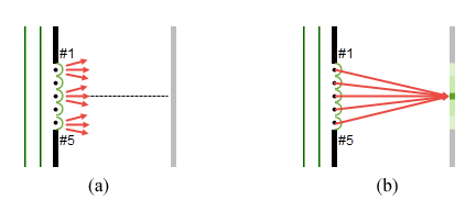Figure 18: (a) Light Produced by Wavelets (b) Central Bright Fringe