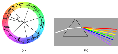 Figure 2: (a) From Newton's Optiks; (b) From Pink Floyd's Optiks