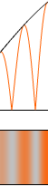 The central bright fringe fills the whole Intensity Graph. This is approaching, but still far away from what Figures (16a) and (16b) are illustrating—point source behavior. It's also closer to what the individual water waves did in Figures (4a) and (4b). Their amplitude seemed to be unrelated to θ. You should be able to picture the result of further reduction in slit width.