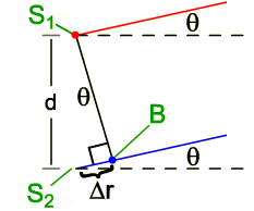 Using right triangle ΔS1S2B, in Figure 8, and noting that d is the distance between S1 and S2, we can say