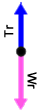 Now suppose that instead of the mass hanger, you were clinging to the end of string. You are the dot in the figure. Gravity pulls you downward with a force, Wr. The string pulls up with a force, Tr.