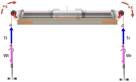 Now try an upward acceleration. Add 100 grams to the left hanger. You should now have a total of 100 g on the right and 200 g on the left. Drag the cart to near the right end of the track. Ignore the situation when Tr = Wr when the cart is being held. You want to notice what happens just when you release the carts.