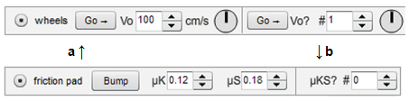 Click "wheels" and set "Vo" to 200 cm/s. Then switch back to "friction pad."