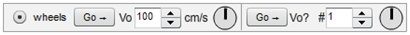 Figures 1 and 3 show parts of the control panel beneath the right end of the track. These controls are used to set the initial velocity of the cart as well as the static and kinetic friction between the cart and track. The panel's appearance changes according to the situation.